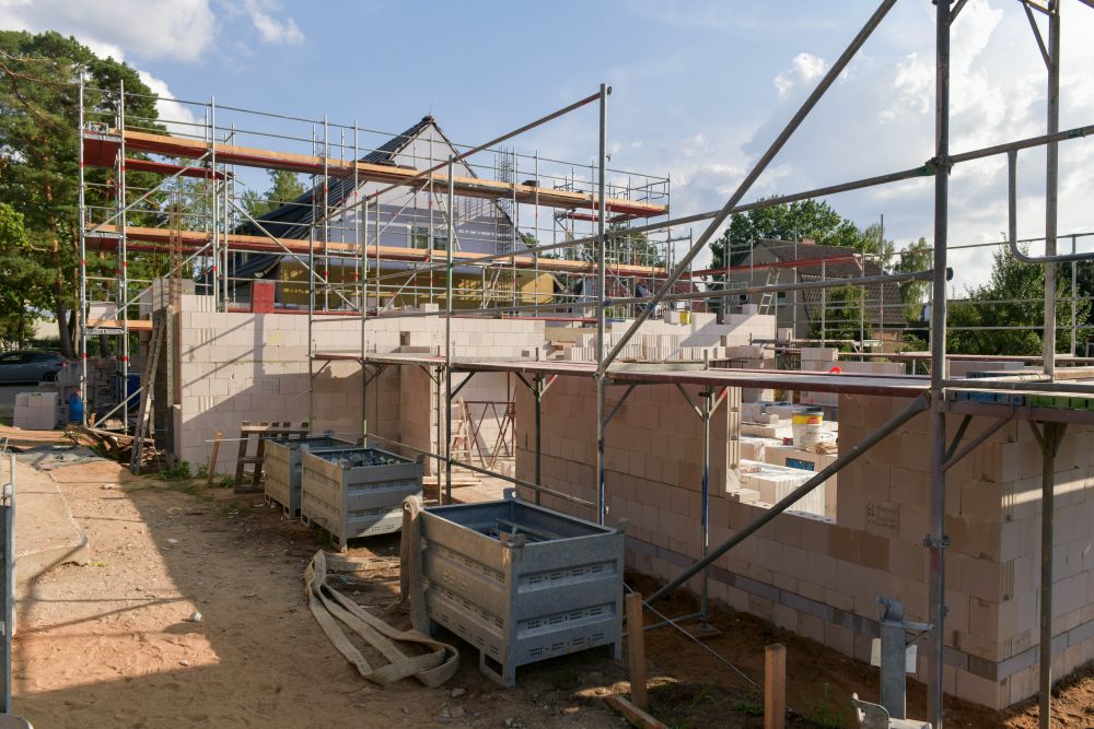 Stein für Stein wachsen die Gebäudemauern. Man ahnt unterdessen, wo schon bald die vier blauen Filter stehen werden, die später das geförderte Grundwasser aus den Tiefbrunnen aufbereiten. Diese sollen im Oktober aus Neubrandenburg mit Schwerlasttransportern geliefert werden.